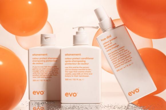 evo’s colour protect range — atonement colour protect shampoo, conditioner and hue dini colour protect leave-in — is designed to do the heavy lifting, supporting your colour through every wash and every day.