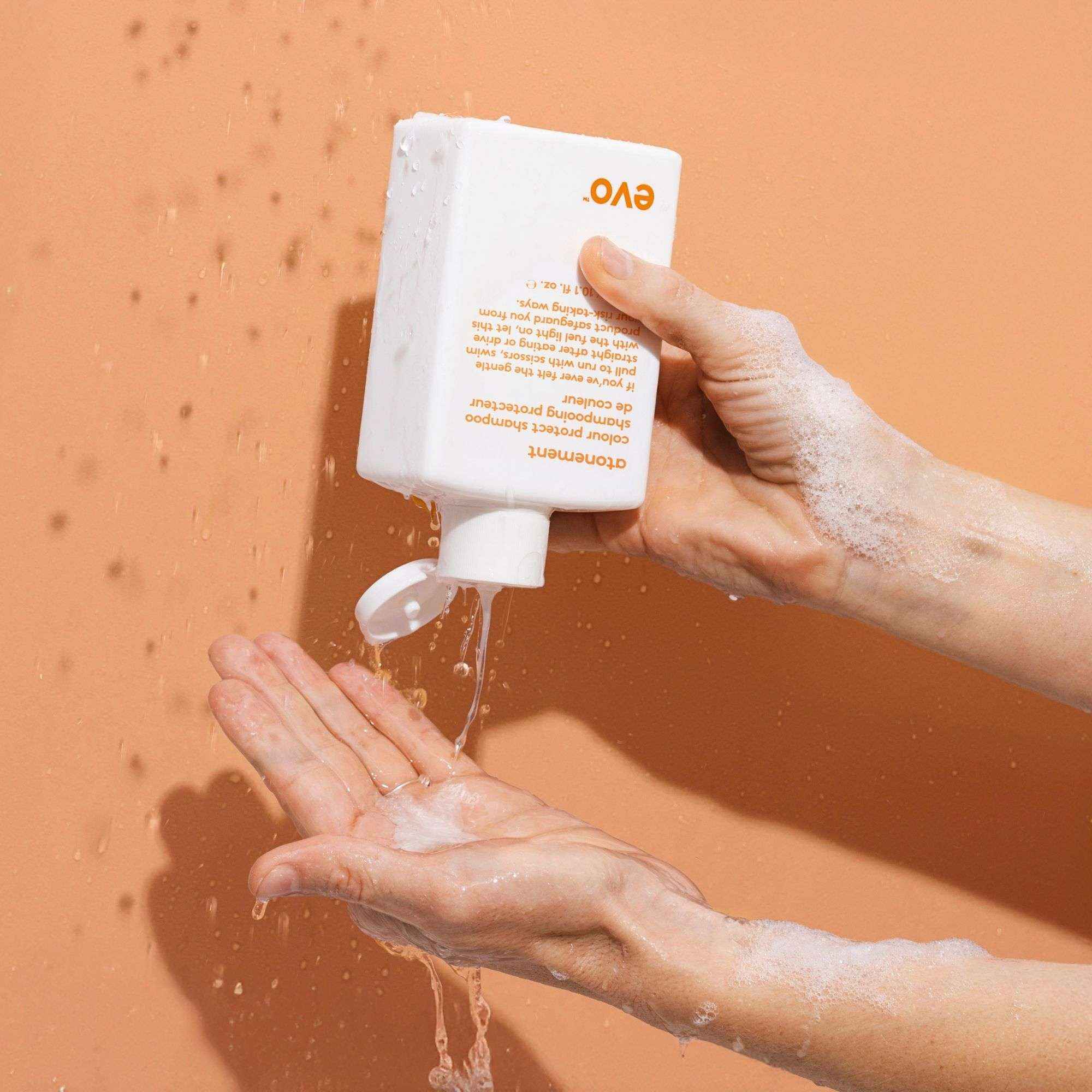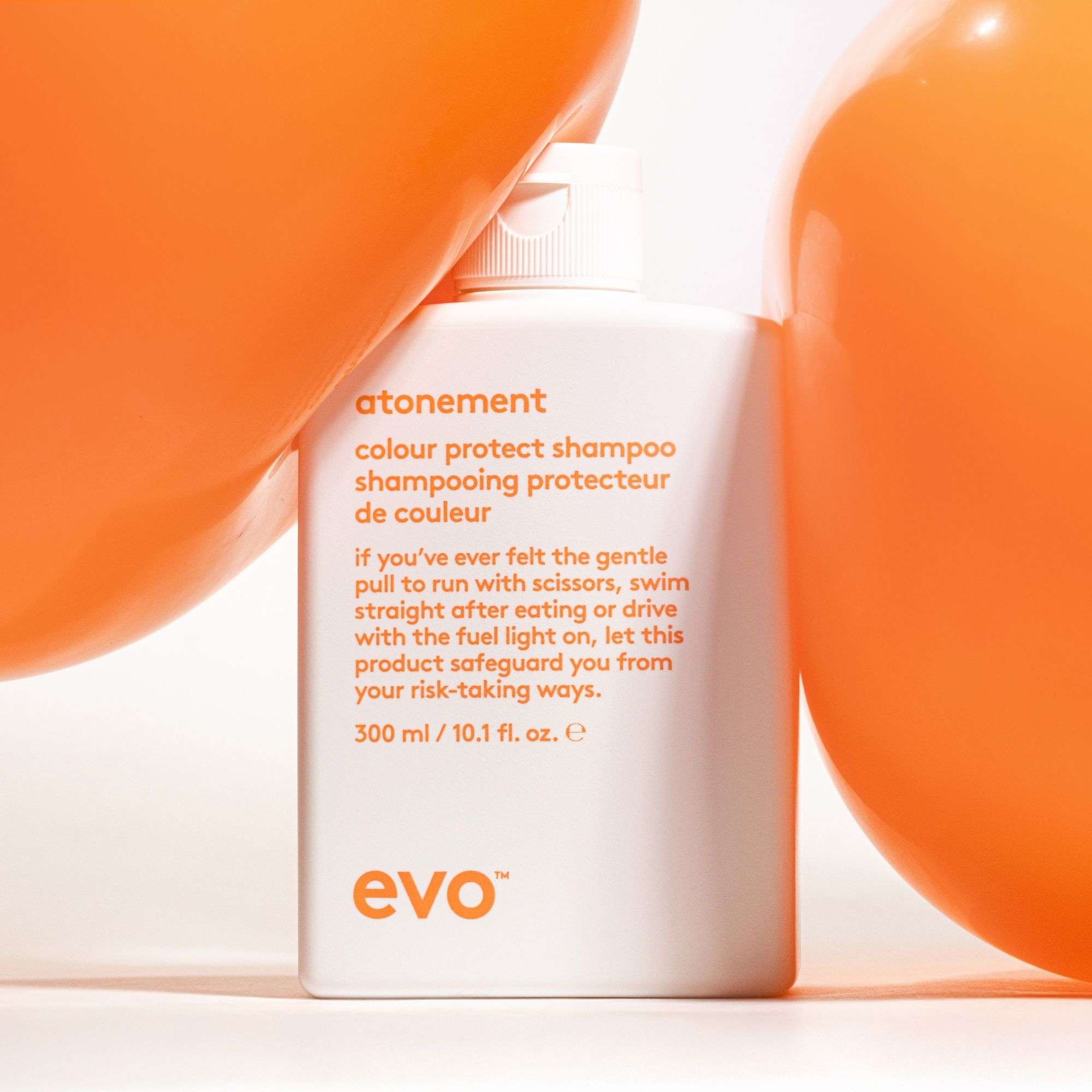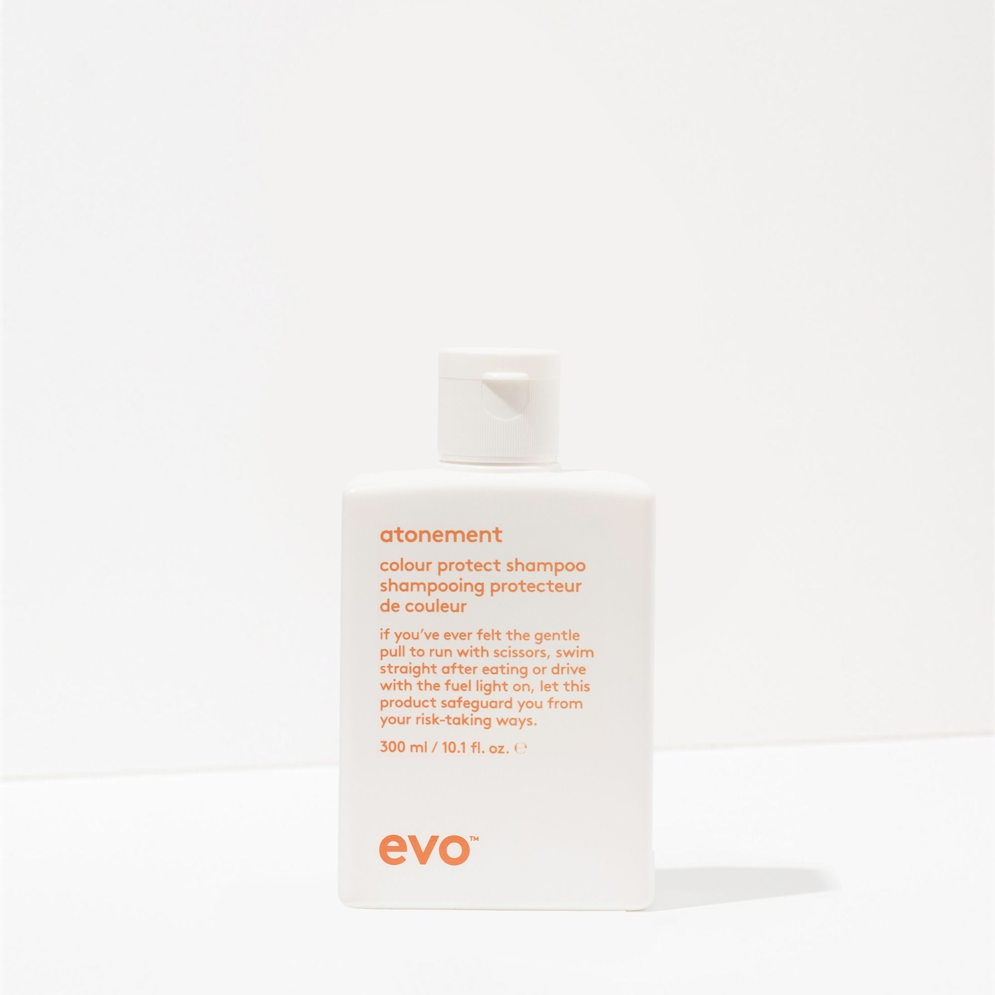 atonement colour protect shampoo contains a blend of coconut and sugar derived surfactants to gently cleanse without stripping colour or overdying hair. formulated with vitamin e and sunflower seed oil, this shampoo helps to guard the hair against colour fade caused by environmental factors. hydrolyzed quinoa strengthens hair and protects against breakage while aloe leaf juice hydrates the hair and seals the cuticle, improving condition and manageability. atonement colour protect shampoo is part of the evo colour protect family, designed to lock in vibrancy, protect against colour fade and keep hair healthy and strong.