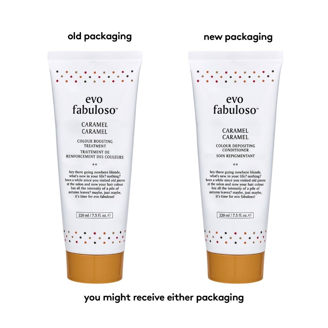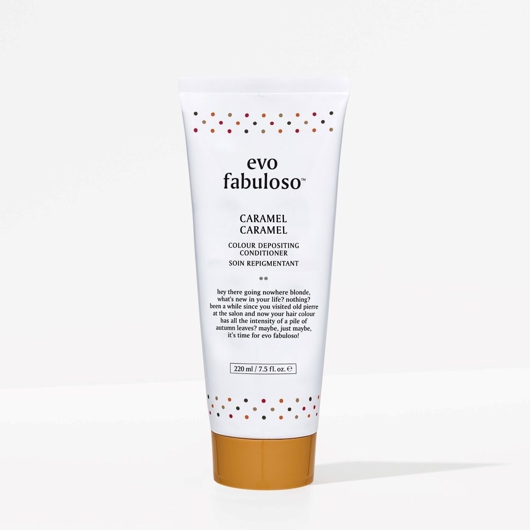 have you noticed a new look to evo fabuloso caramel? the changes are simple but make so much sense - like all the best things in life. rather than being called a colour boosting treatment, it’s now called a colour depositing conditioner. evo fabuloso colour depositing conditioners instantly refresh, tone, revive and add shine to colour treated hair. this at-home, 3 minute conditioning treatment uses cationic hair dye to help boost colour and keep hair vibrant for longer. this hair treatment features reparative and anti-static properties to help strengthen hair and reduce frizz. caramel is best suited to dull, dry, colour-treated light blonde to dark blonde hair. take evo fabuloso straight from shelf to shower to keep colour-treated hair toned, vibrant and healthy in-between salon visits.