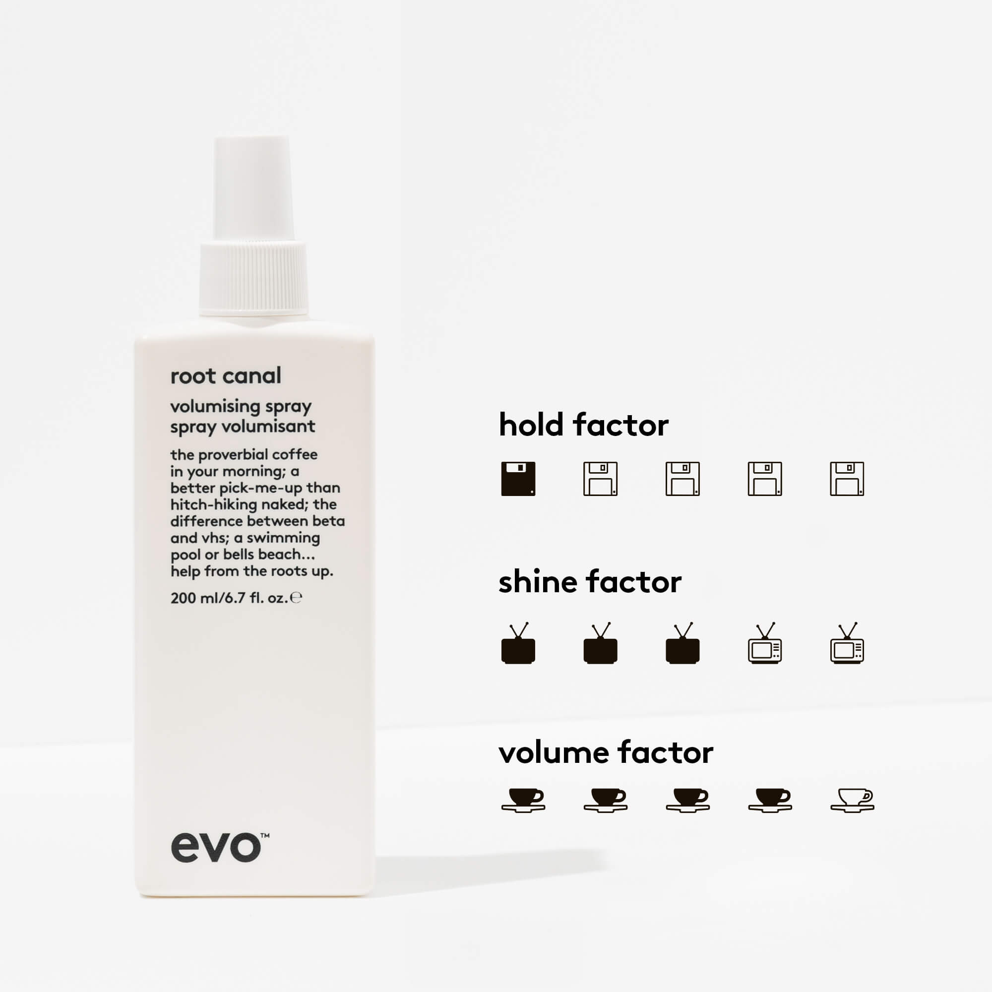 root canal volumising spray offers style support, body and texture to hair in need of lift. this hair styling spray adds definition and texture to enhance volume and create fuller, thicker styles while reducing frizz and fly-aways. root canal can be layered with salty dog salt spray for added beachy texture and body. root canal volumising spray is part of the volume family, designed to volumise and build body in fine, limp, colour-treated hair.