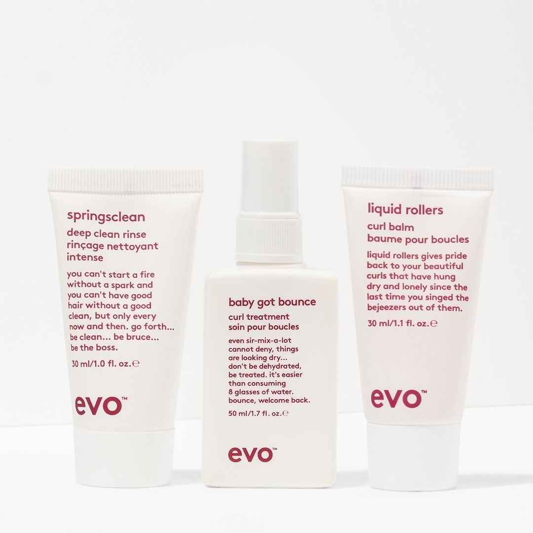 a travel-size deep clean rinse, treatment and styling balm that work together to create the ultimate routine for wavy hair types.