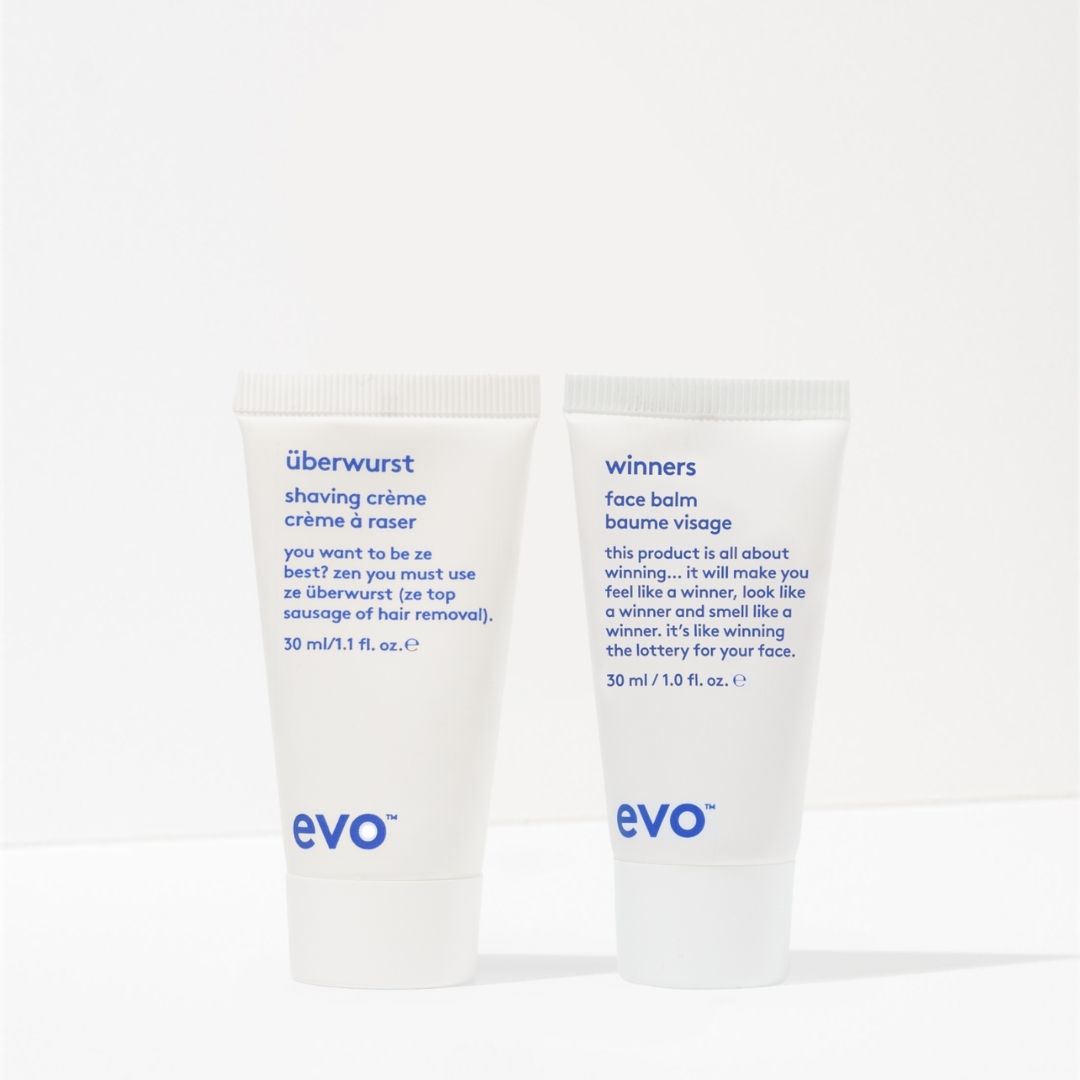 a travel-size shaving cream and face balm duo, here to reduce shave burn and soften and soothe all skin types.